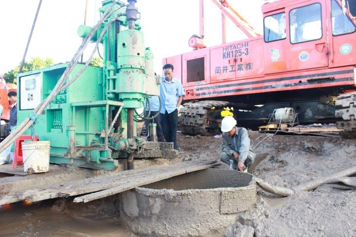 Việc lắp đặt ống bên ngoài và khoan đất để giảm áp lực nâng của cột bên trong cũng mất nhiều thời gian và công sức vì sau khi khoan xong phải xới đất và hút cát lên.